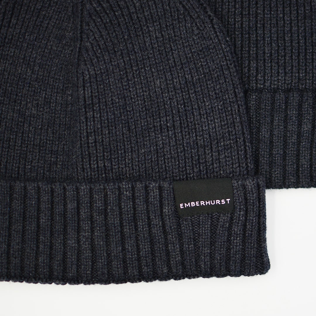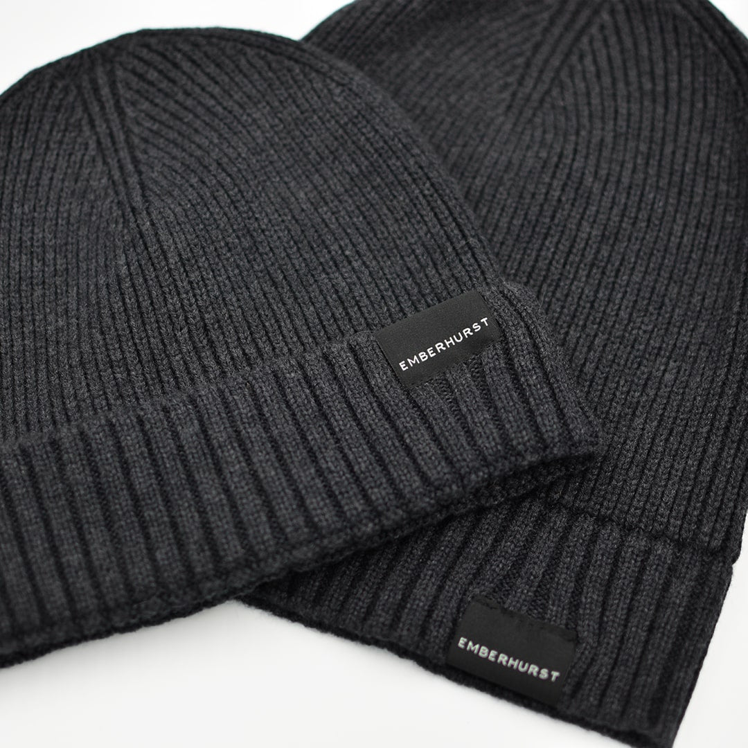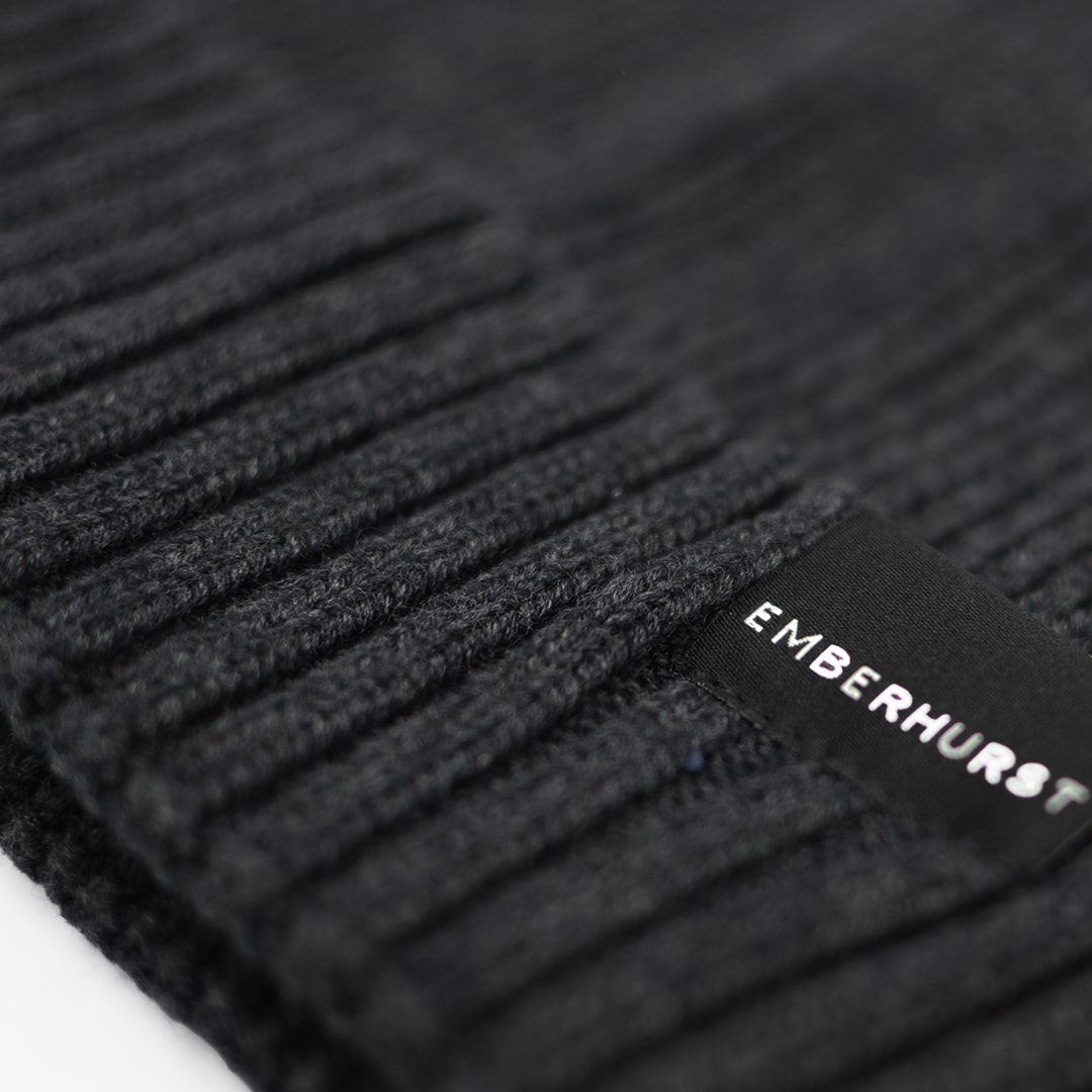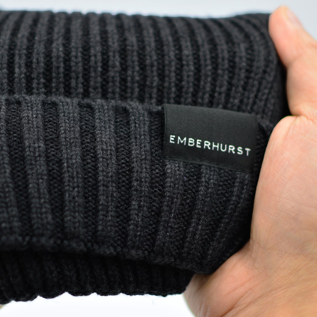The ribbed knit runs vertically along the Emberhurst beanie to allow it to stretch and expand with different head sizes.
